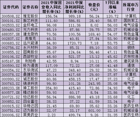 表:7月份以來累計漲幅超30%的中報業績雙增長公司情況: