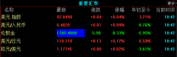 全球主要商品以下跌為主