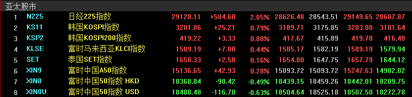 歐股上周普遍下跌,德國DAX指數(shù)周跌幅0.45%,法國CAC40指數(shù)周漲幅0.12%,英國富時100指數(shù)周跌幅0.14%。亞太主要股指漲勢明顯,日經(jīng)225指數(shù)周漲幅5.38%,韓國KOSPI指數(shù)周漲幅2.14%。