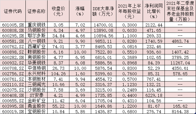 在行業(yè)基本面持續(xù)改善的背景下,社保基金及養(yǎng)老金也提前布局部分鋼鐵股。統(tǒng)計顯示,截至今年二季度末,有11只鋼鐵股獲社保基金及養(yǎng)老金持倉,華菱鋼鐵、首鋼股份、鞍鋼股份、甬金股份等4只個股本期獲社保基金及養(yǎng)老金新進持有,持股數(shù)量分別為11267.04萬股、2480.05萬股、1407.42萬股和165.62萬股,八一鋼鐵、永興材料、中信特鋼等3只個股本期也被社保基金及養(yǎng)老金增持,增持數(shù)量分別為3153.74萬股、360.98萬股和61.00萬股。