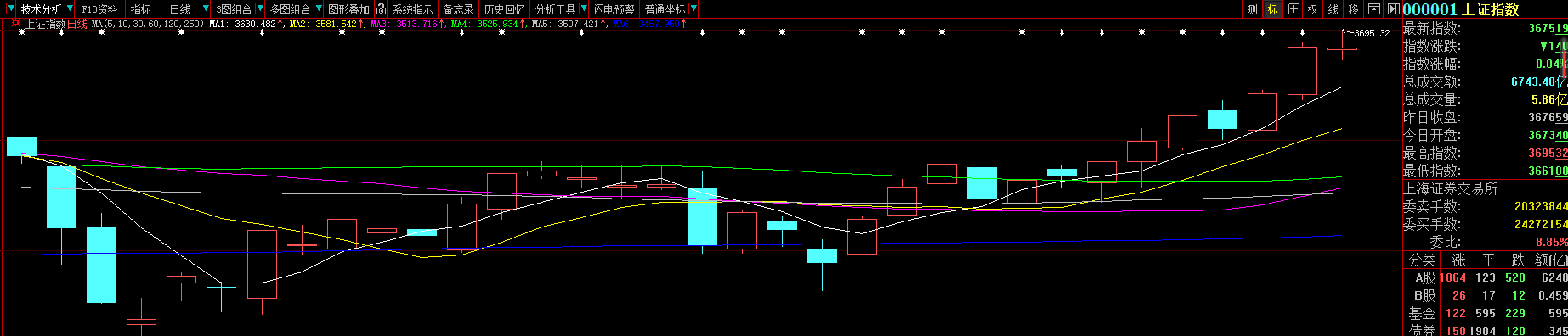 具體來看,上證指數跌0.04%,報3675.19點;深證成指跌0.1%,報14688.08點;創業板指跌0.97%,報3219.95點;滬深兩市合計成交額14747.84億元,兩市成交額連續第36個交易日突破1萬億元。