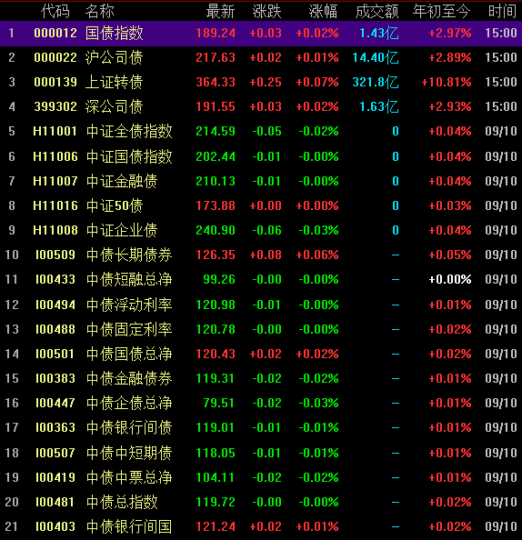 A股市場:上周(9月6日-9月10日,下同),A股三大指數漲跌互現。上證指數周漲幅3.39%,報3703.11點;深證成指周漲幅4.18%,報14771.87點;創業板指周漲幅4.19%,報3106.26點。