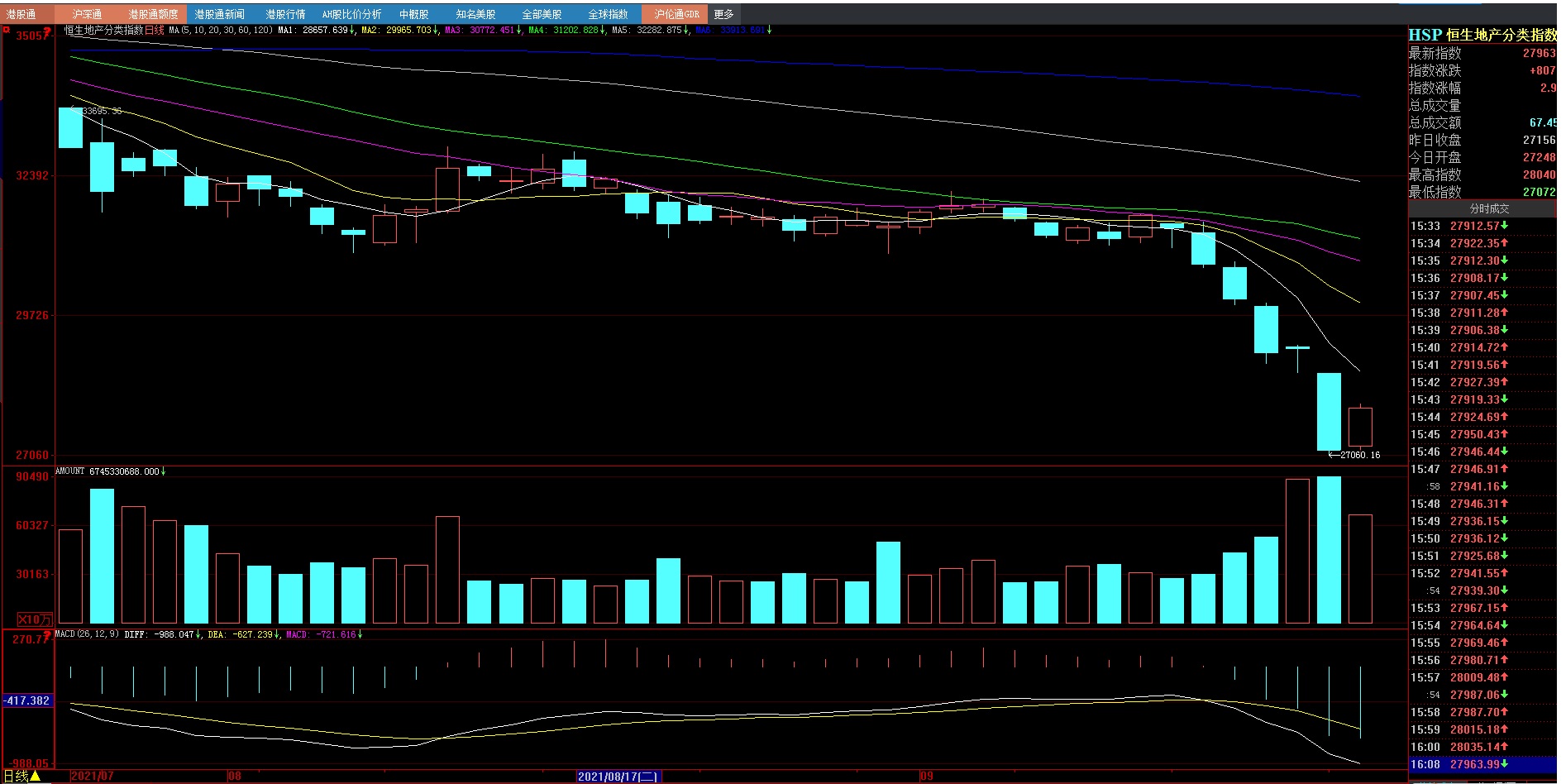 在此影響下,我國香港股市周一也大幅下挫。恒生指數和恒生科技指數盤中跌幅一度超4%,截至收盤,恒生指數收跌3.3%報24099.14點,恒生科技指數跌2.8%。恒大物業跌11.3%,融創中國、中國恒大跌超10%,碧桂園跌超6%。京東跌超4%,快手跌近3%,美團、阿里巴巴跌超2%。