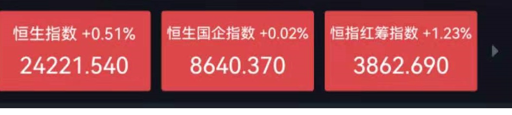 盡管如此,周二,我國香港股市小幅上漲,出現了企穩反彈的跡象。周二,恒生指數震蕩收漲0.51%,24000點失而復得,恒生科技指數跌0.46%。地產股反彈,恒生地產指數大漲2.97%,富力地產漲超12%,碧桂園漲超8%;理想汽車-W跌超5%,下調三季度汽車交付量預期。