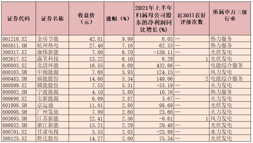最近30日內,有機構對于電力股表示看好,具體來看,有9只個股獲機構給予“買入”或“增持”等看好評級,其中,福能股份和三峽能源得看好評級次數最多,均為2次,露笑科技、江蘇新能、林洋能源、川投能源、南網能源、華能水電、內蒙華電等7只個股獲得看好評級次數均為1次。