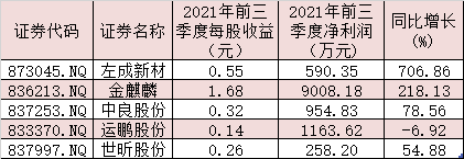表:已披露2021年三季報(bào)業(yè)績(jī)新三板公司一覽