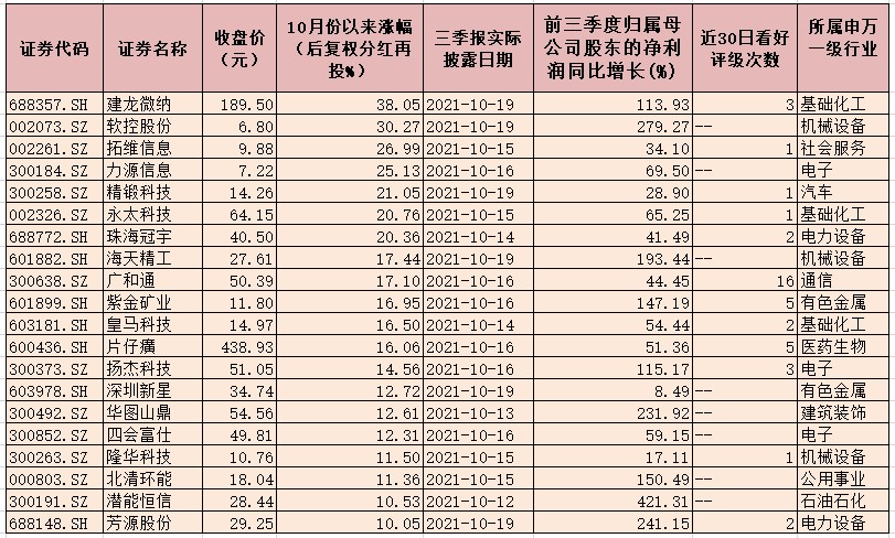 表:10月份以來漲幅超10%的前三季度凈利潤增長股一覽