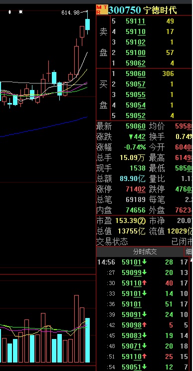 作為A股儲能板塊的龍頭,寧德時代早盤也一度高開,股價歷史首次突破600元大關。截至收盤報590.6元/股。