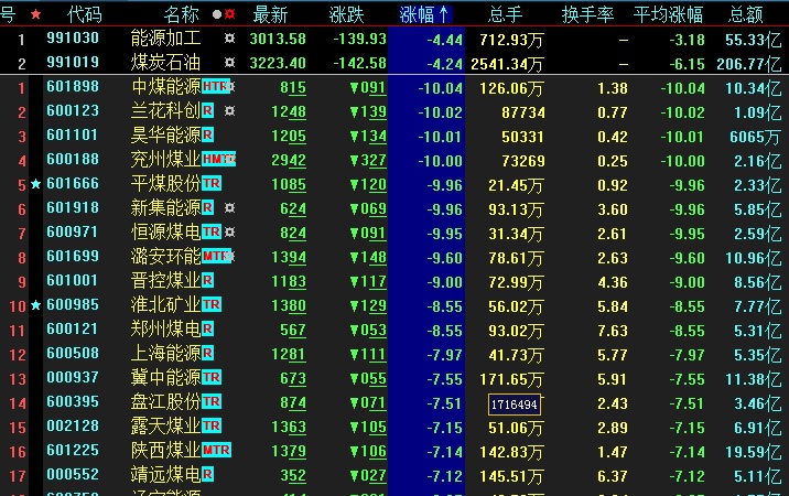與電力股相反的是,周三,煤炭股集體重挫,跌上熱搜。