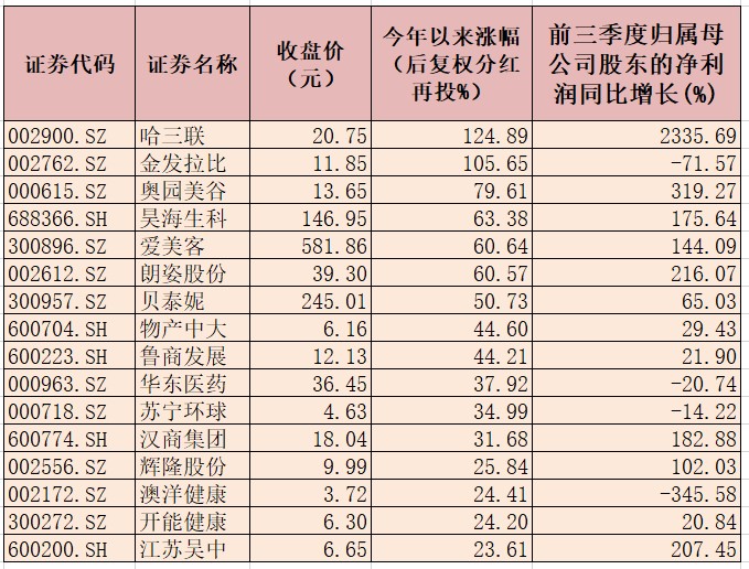 盡管目前醫美板塊走弱,但是醫美概念的上市公司前三季度的業績依舊亮眼。具體來看,有36家醫美概念公司前三季度凈利潤實現同比增長,占比近七成,其中,誠志股份、哈三聯、太極集團等3家公司前三季度凈利潤同比增長均超10倍,表現出色。