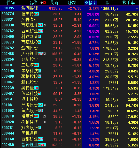 11月18日,新能源賽道持續活躍,綠電、風電、光伏等綠色能源板塊繼續走強,其中,鹽湖提鋰板塊再次領漲兩市,科達制造、西藏珠峰晉級兩連板。