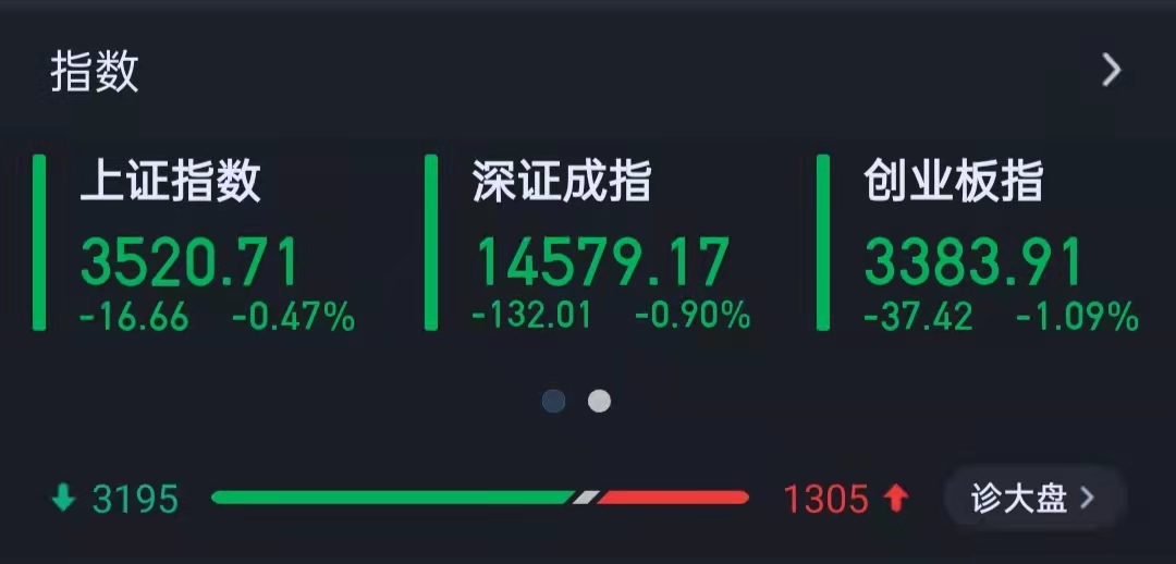 11月18日,A股三大指數弱勢震蕩,截至收盤,上證指數跌0.47%,報3520.71點;深證成指跌0.9%,報14579.17點;創業板指跌1.09%,報3383.91點;滬深兩市合計成交額11243.25億元,連續第20個交易日突破1萬億元;總體來看,兩市個股普跌,超3100只個股下跌。
