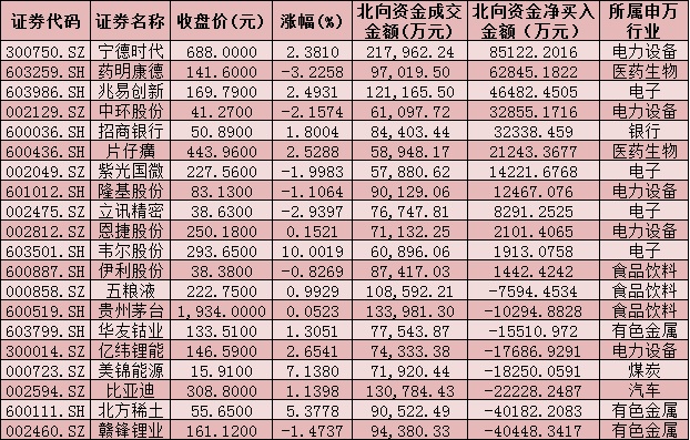 表:周四(12月2日)滬、深股通前十大成交活躍股交易情況