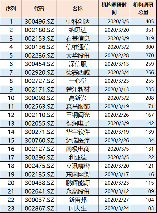 更為集中的是,有23只個股近一個月均被調研超過100次,合計調研總量高達4532次,占A股公司被調研總次數的49.9%。從行業分布來看,這23只個股分布于軟件服務、集成電路、應用軟件、電子設備制造、“PC、服務器及硬件”等科技行業。詳見下表:
