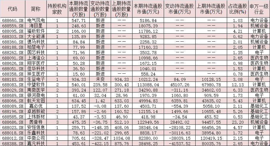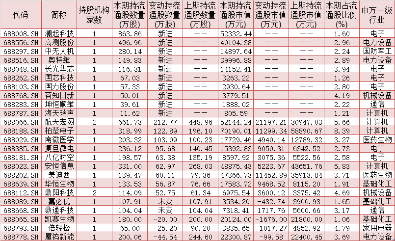 表1:今年二季度獲社保基金持倉的科創(chuàng)板公司股票