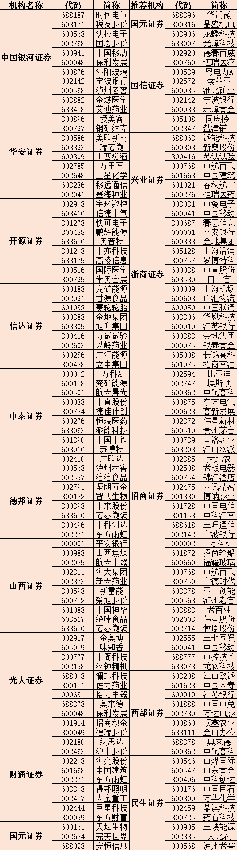 從券商推薦的個股來看,上述151只金股中,有20只個股獲2家及以上券商推薦。其中,寧波銀行、中國移動、瀘州老窖、金地集團等4只個股均獲3家券商聯合推薦。