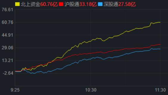 從資金面來看,3月1日上午,北上資金凈買入金額達60.76億元,其中,滬股通凈買入33.18億元,深股通凈買入27.58億元。