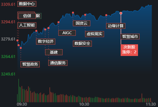 3月1日早盤,A股三大指數開盤后持續走高,滬指再次沖破3300點。截至上午11:30,上證指數漲0.90%,報3309.06點;深證成指和創業板指漲幅分別為1.02%和0.57%;滬深兩市成交額合計5451億元??傮w來看,A股市場個股漲多跌少,漲跌停方面,有34只個股漲停,跌停股1只。
