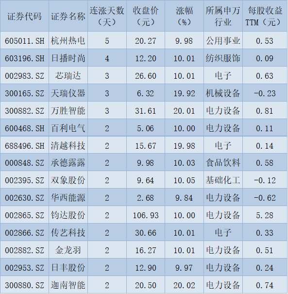 漲停股方面,今日有26只個股以漲停價報收,其中,有15只個股,股價已連續上漲超過2個交易日;跌停方面,有66只個股跌停價報收。從申萬一級行業看,電力設備漲停股數量居首,為7只,醫藥生物和電子緊隨其后,漲停股數均為4只;跌停方面,房地產和傳媒居首,均為11只。