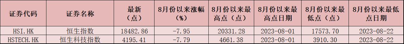 回顧8月份市場行情來看,8月份以來,恒生指數和恒生科技指數均出現較大回調。同花順數據顯示,8月1日至8月30日,恒生指數期間累計下跌7.95%,報18482.86點,恒生科技指數期間累計下跌7.79%,報4195.41點,而南向資金積極布局,期間凈買入港股超666.47億元。