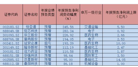 103家上市公司發布2021年度業績預告 83家預喜6家預虧