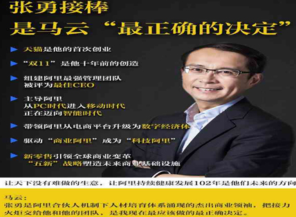 9月10日上午消息,今日是教師節,阿里巴巴集團創始人馬云發出題為“教師節快樂”的公開信宣布:一年后的阿里巴巴20周年之際,即2019年9月10日,他將不再擔任集團董事局主席,屆時由現任集團CEO張勇接任。對于將在一年后接任董事局主席的張勇,馬云認為,阿里巴巴的接力火炬交給他和他領導的團隊,是馬云與阿里巴巴合伙人群體現在最正確的決定。我很驕傲阿里巴巴現在的治理制度、企業文化和源源不斷的人才梯隊,允許我走開而不至于帶來破壞。那么,阿里到底能不能沒有馬云?有分析稱,阿里有意識地將企業架構和日常運作與創始人分離開來,阿里很多業務已由年輕一代高管具體掌管,即使馬云離開,對阿里的影響也不會那么大。