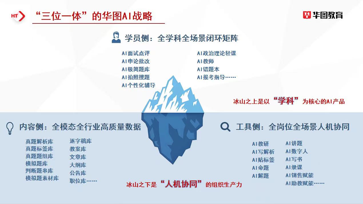 “AI產(chǎn)品質(zhì)量過硬,關(guān)鍵在于經(jīng)歷了海量線下付費(fèi)學(xué)員的真實(shí)驗(yàn)證,并在教師協(xié)助下不斷強(qiáng)化學(xué)習(xí),本質(zhì)是深度的人機(jī)協(xié)同。”依托規(guī)模優(yōu)勢(shì),華圖實(shí)現(xiàn)了唯有大機(jī)構(gòu)才能承擔(dān)的人機(jī)協(xié)同投入。