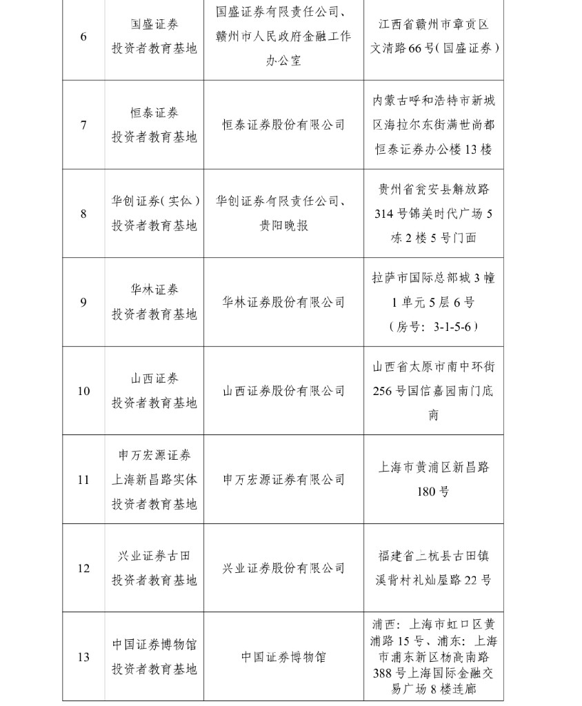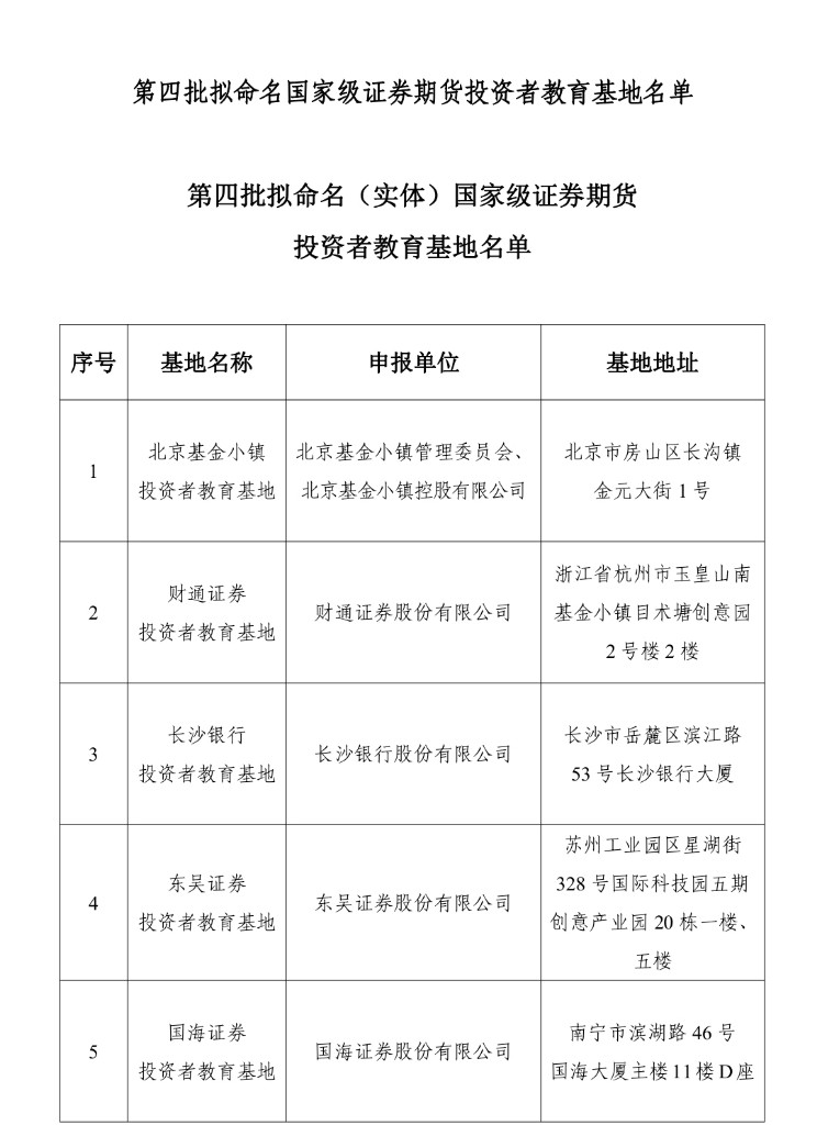 第四批擬命名國家級證券期貨投資者教育基地如下: