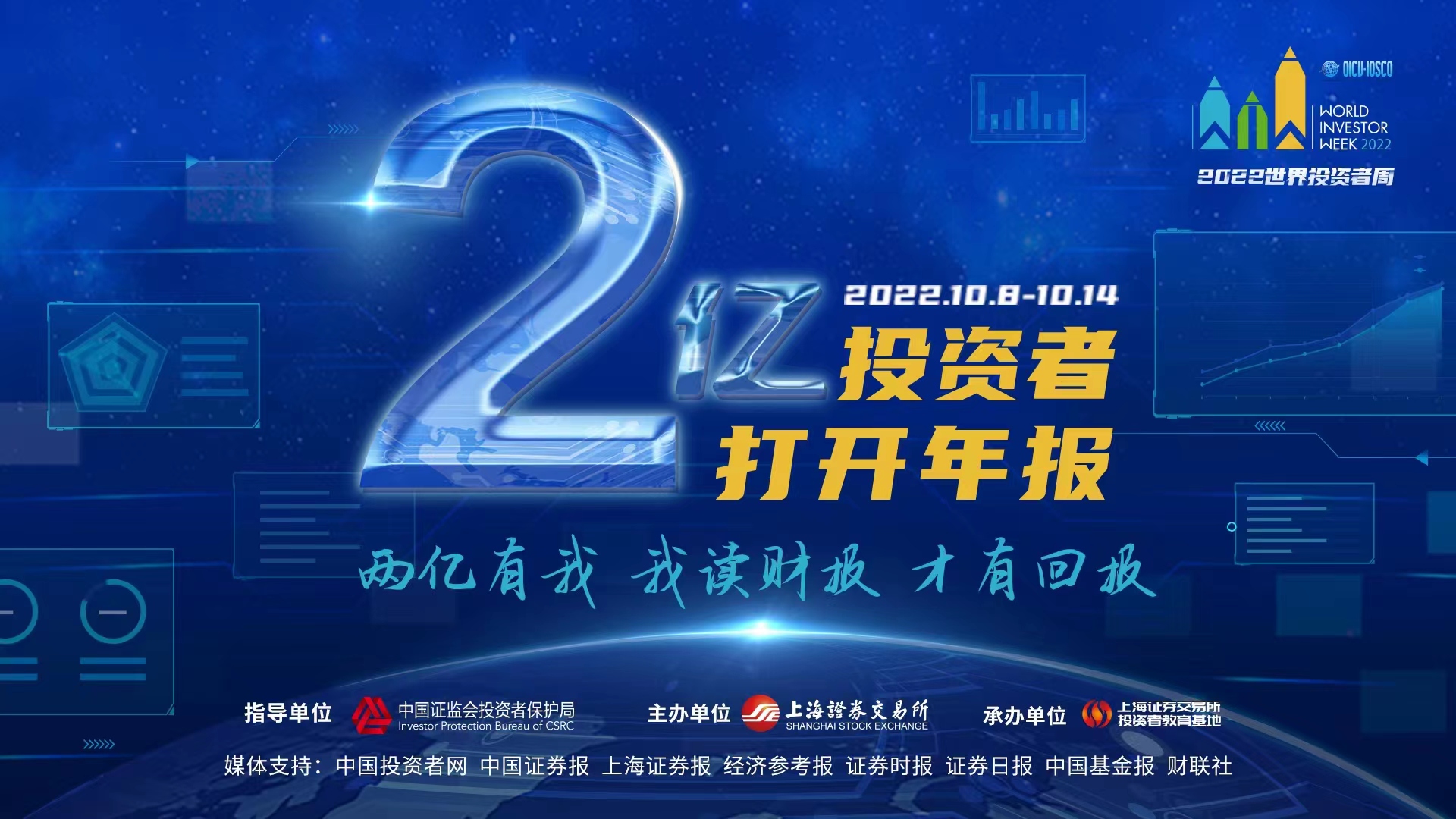 10月8日,作為參加“2022年世界投資者周”的主題活動,在中國證監會投資者保護局指導下,由上海證券交易所牽頭的“2億投資者打開年報”主題公益投教活動正式啟動。